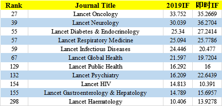 除了Nature,Cell, Science三大系列外,Lancet和JAMA是两大临床系列杂志,分数也都很高,覆盖多个领域,跟CNS系列类似,总体来说都比较稳定。