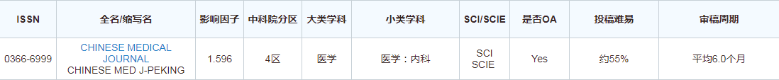 Chinese Medical Journal杂志信息