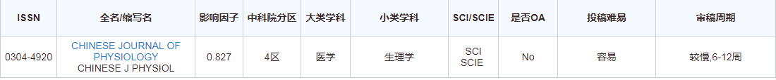 4.医学sci《生理学报》 英文名:Chinese Journal Of Physiology