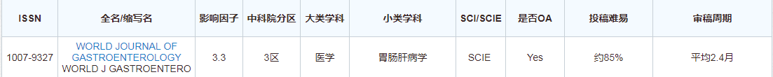 ISSN:1007-9327 主办单位:世界胃肠病学杂志社