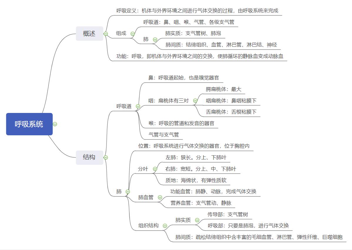 对于呼吸系统思维导图,呼吸系统(Respiratory System),人体与外界空气进行气体交换的一系列器官的总称,包括鼻、咽、喉、气管、支气管及由大量的肺泡、血管、淋巴管、神经构成的肺,以及胸膜等组织。临床上常将鼻、咽、喉称为上呼吸道,气管以下的气体通道(包括肺内各级支气管)部分称为下呼吸道,下面我们了解下呼吸系统思维导图: