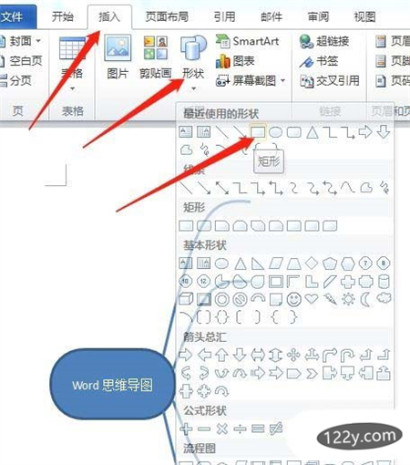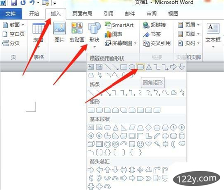 1、首先,打开Word软件,点击插入选项卡,点击形状功能,点击圆角矩形。文章源自:https://www.xuebayuan.com/学霸园-https://www.xuebayuan.com/siweidaotu/492.html