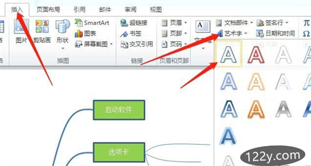 11、点击插入选项卡,点击艺术字,点击一种艺术字体,拉到导图上需要的位置,输入需要的文字。这样导图就做好了。